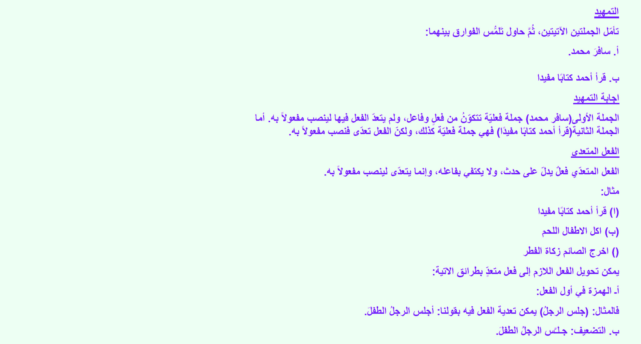 11. Strand 10: Grammar : Sub-strand : فعل اللازم و فعل المتعدي